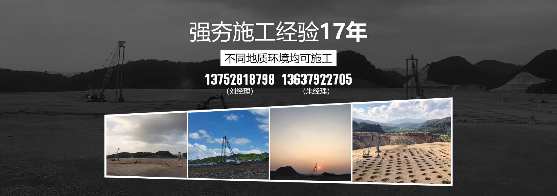 公司成立于2014.1.2日,公司成立前我單位人員從事強(qiáng)夯職業(yè)10年。經(jīng)歷多年的強(qiáng)夯施工任務(wù)中,道路高填方,園區(qū)廠房地基處理,機(jī)場(chǎng)高填方,房間地基處理,污水池地基強(qiáng)夯養(yǎng)豬場(chǎng)等不同地質(zhì)回填地基處理均有寶貴經(jīng)驗(yàn)。公司強(qiáng)夯設(shè)備主要分布于云、貴、川、鄂、桂、渝城市。強(qiáng)夯設(shè)備十余臺(tái),強(qiáng)夯能級(jí)從小能級(jí)到超大能級(jí)都可承接施工。